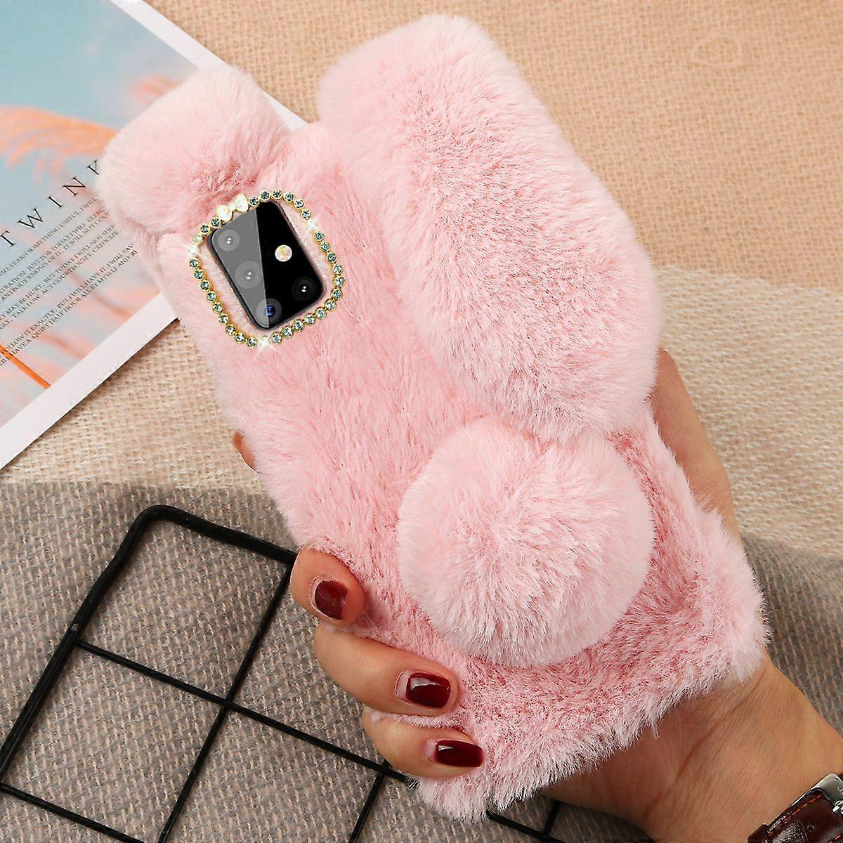 3 pcs Adorable Rabbit Shape Phone Case Rhinestone Phone Shell Bunny Shockproof Cover Plush Warm Case Compatible with Galaxy A71(Pink)