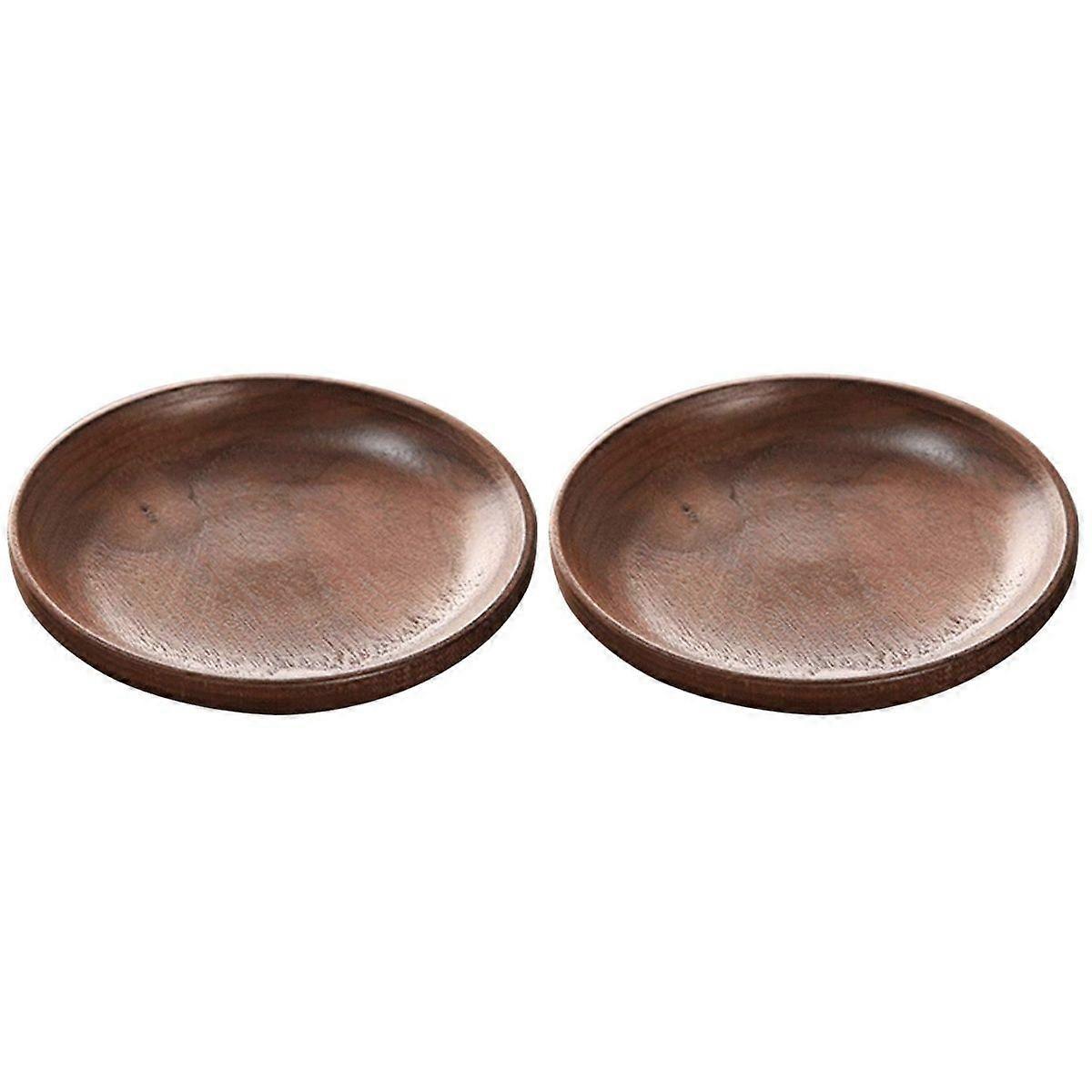 2 pcs Japanese-style Round Black Walnut Wood Dinner Serving Plate Desserts Dish Dinnerware Tray Eco-friendly Tableware (20x20x2cm)