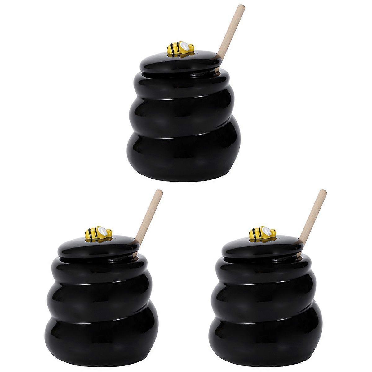 Description Are you looking for a adorable honey storage jar? This ceramic jar can be one of your best choice.This is a premium storage bottle, durable and safe for use. Through fine grinding, the storage effect is pretty good. Strong hardness, keep your inner honey things safety. The product is suitable for people to use for a long time. Features - Color: Black -Material:Ceramic, wooden - Size: 11.00X10.00X10.00cm/4.32X3.93X3.93in -Allow honey to stay fresh longer, safe and convenient for packaging.Perfect kitchen assistant for honey or syrup. - The honey storage jar is good for storing honey , can be used as a tea storage canister, candy jar, and more. - This honey storage jar has a simple design, but very practical in use, bring much convenience to you. - The honey ceramic jar is equipped with a lid to keep dirty thingsaway from the honey inside. -Compact and small size, easy to store, this honey storage pot is not taking up any space. You will enjoy it. Package list: 3 x honey jar 1 x honey dipper stick