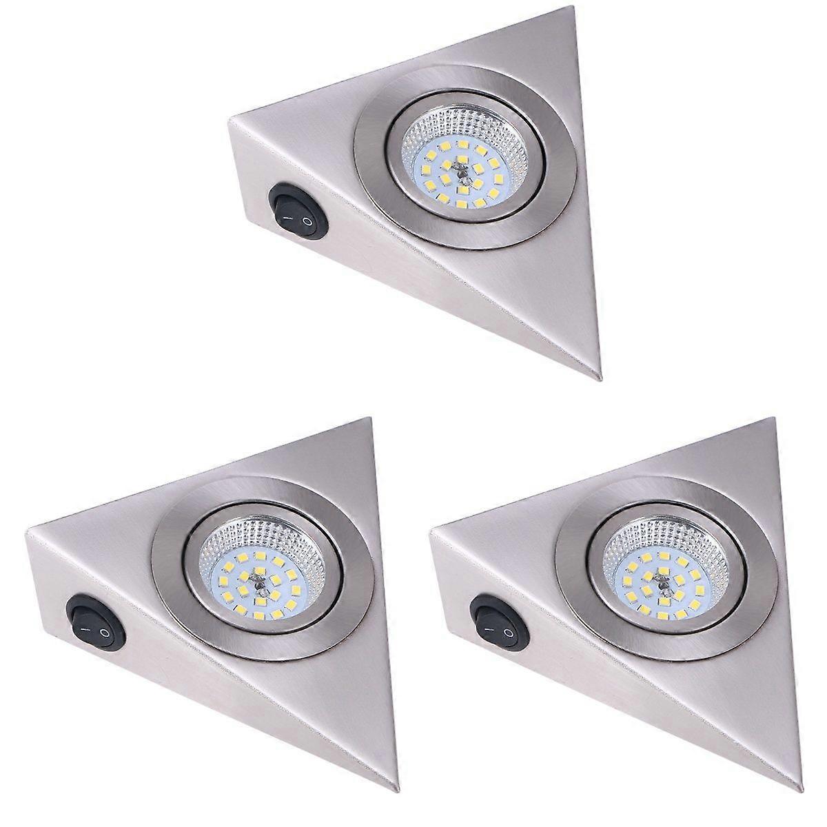 3pcs 13x13cm LED Under Cabinet Lights Triangle Mini Shelf Stainless Steel Brushed Cupboard Lamp Daylight White for Kitchen Cabinet, Wardrobe, Wine coo