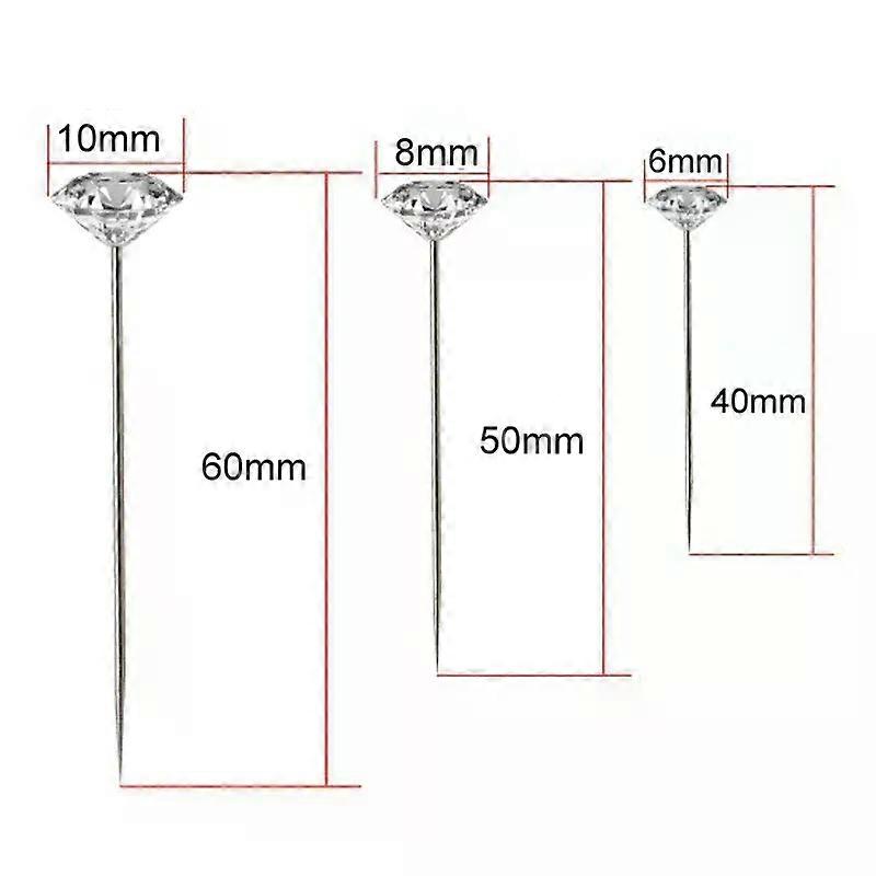 1Box 50/100Pcs Alloy Pins Transparent Diamond Pin DIY Wedding Bouquet Pins Stitching Needles Plastic Box Sewing Accessories Product Description Features: The color is beautiful, durable and not easy to rust. Perfect sewing, craft, clothing, etc. The ideal decoration for the wedding, the bride corsage, etc. Material : Alloy Size: 40x6mm,50x8mm,65x10mm Color : As show in pictures. Packing: 1 box NOTE 1.Please allow slight deviation for the measurement. 2.Due to the light and screen difference, the item's color may be slightly different from the pictures,thanks for understanding. Feedback and Rewards 1. Dear buyers, your satisfaction and Positive feedback is very important to our business development. Please leave rate the details of transaction (Detailed Seller Ratings) on with a "PERFECT 5 STARS". 2. If you are not satisfied with the transaction for any reason, please feel free to Contact us, instead of giving negative feedback or open dispute. we will try our best to help you until the problem solved. _x000D_