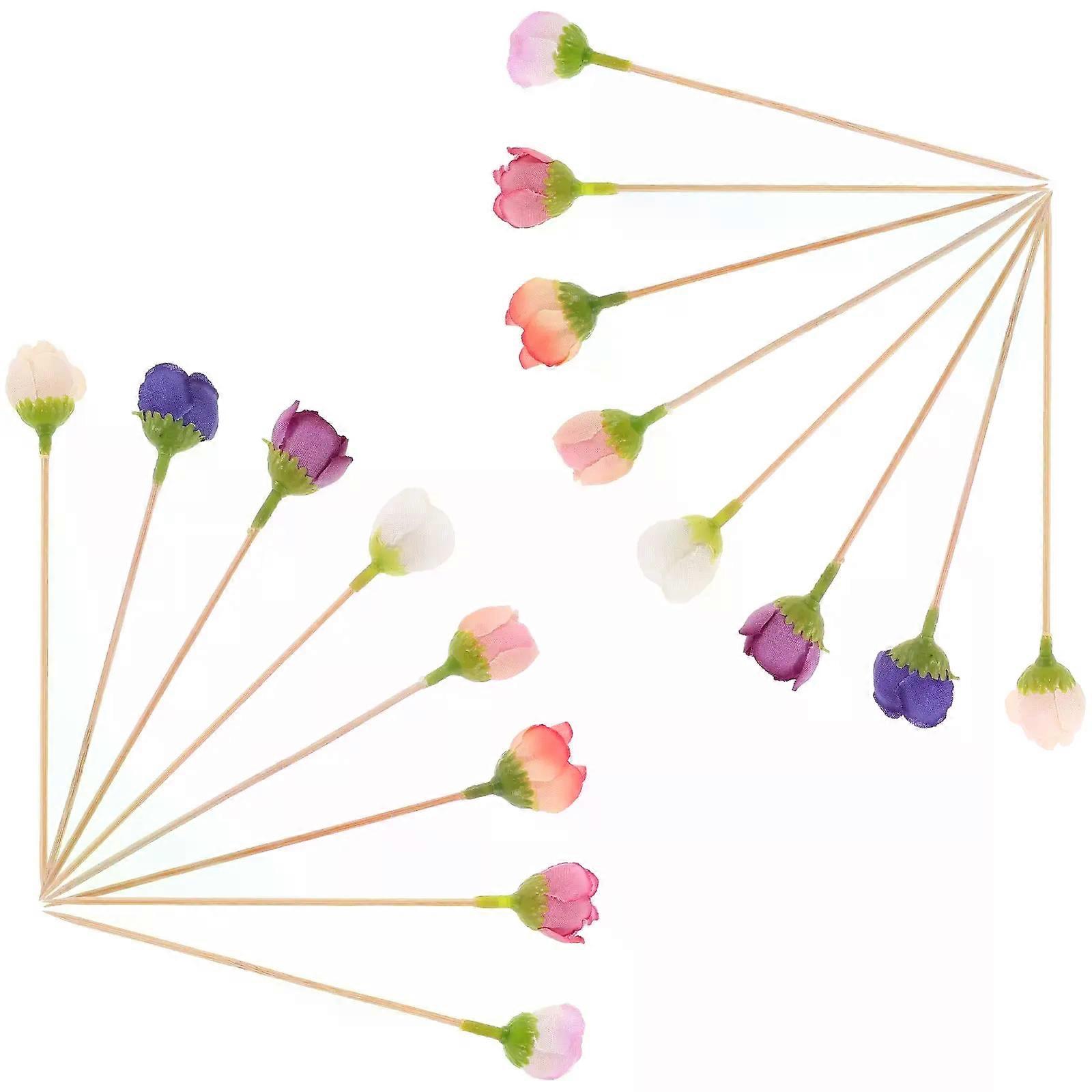 30 Pcs Disposable Wooden Rose Bud Picks Fruit Platter Decorations Dessert Toppers Cocktail Skewers Party Food Display Cupcake