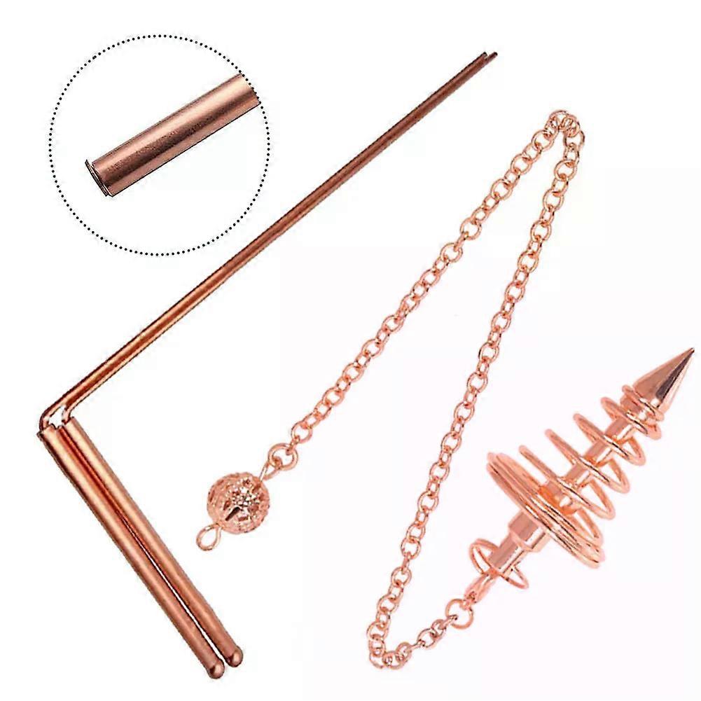 3Pcs/Set Pure Copper Dowsing Rods Kit Divining Rods + Pendulum For Water Divining Witching Energy Healing Metal Detector Rod