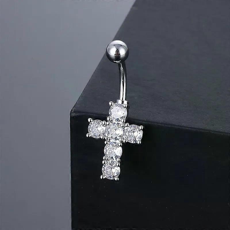 Sweet Crystal Zircon Cross Belly Button Ring Cross Piercing Fashion Navel Nail Puncture Body Piercing Jewelry Accessories