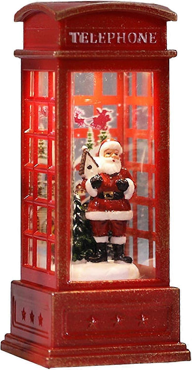 Christmas Snow Globe Lantern in a Santa Phone Booth, Battery Operated LED Decoration