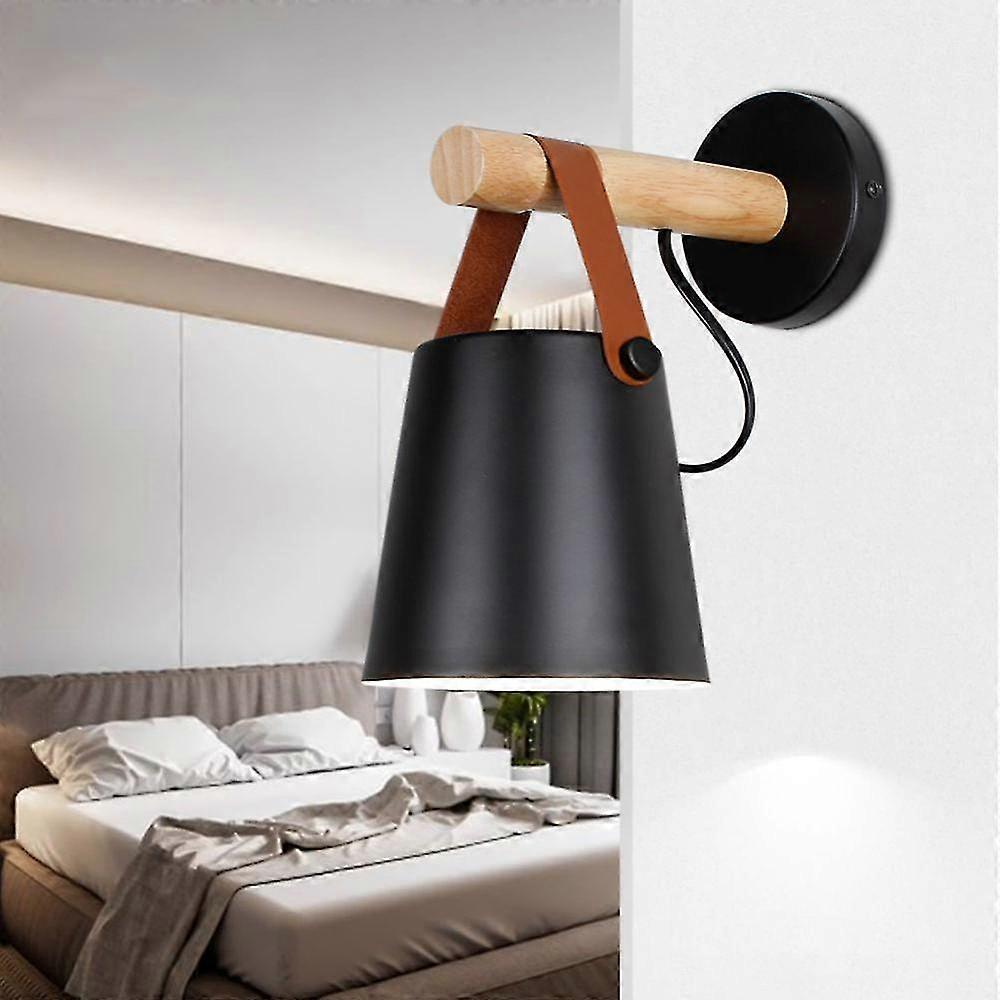 E27 Modern Wall Sconce Metal Wrought Iron Wood Belt Nordic Lighting Black