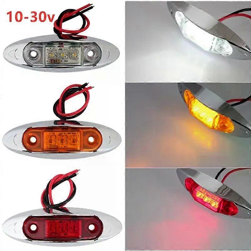 10x 12v 24v white LED Side Marker Light Clearance Lamp 10-30v Car Truck lightsTrailer lamp Tractor Rear lights external Lights 10pcs LED white red amber blue green Side Marker Light Clearance Lamp 10-30V Emark Car Truck lightsTrailer lamp Tractor Rear external Lights Parking lights Features: *3 LED Side Marker Clearance Fish Shape Truck Van Trailer Red Lamp Light * and high quality *Made of high quality material, durableand practical to use *With high quality LED lamp beads, low power, high brightness, energy saving and environmental protection; high waterproof *It can directly replace the traditional lamp. Install it on both sides of the car as the wide lamp or warning light can make your night driving safer. *No need to change the original car wire. Direct wiring, easy installation *High luminous purity, no need for lamp cover filtering, optical wavelength error within 10 nm *The power consumption is extremely low.Compared withthe traditional light bulb, when the brightness is the same,the power consumption is only 6% of the traditional light bulb. *Long servicelife, no filament structure, no heat. Theoretical service life is 100,000 hours, but in normal use, the life expectancy can be more than 50,000 hours Specifications: *Voltage: 10-30V DC *Base Material: plating plate *Power Lead Length: 25cm/9.8inches(Approx.) *Shell Material: PC *Waterproof rating: IP67 *Accessories: 2 screws *Light Color: Red Amber White(As pictures show) *Wiring: Black For Negative, Red For Positive *Quantity: 10pcs Note: 1.The real color of the item may be slightly different from the pictures shown on website caused by many factors such as brightness of your monitor and light brightness. 2.Please allow slight manual measurement deviation for the data. Package Contents: 10*3LED Lights