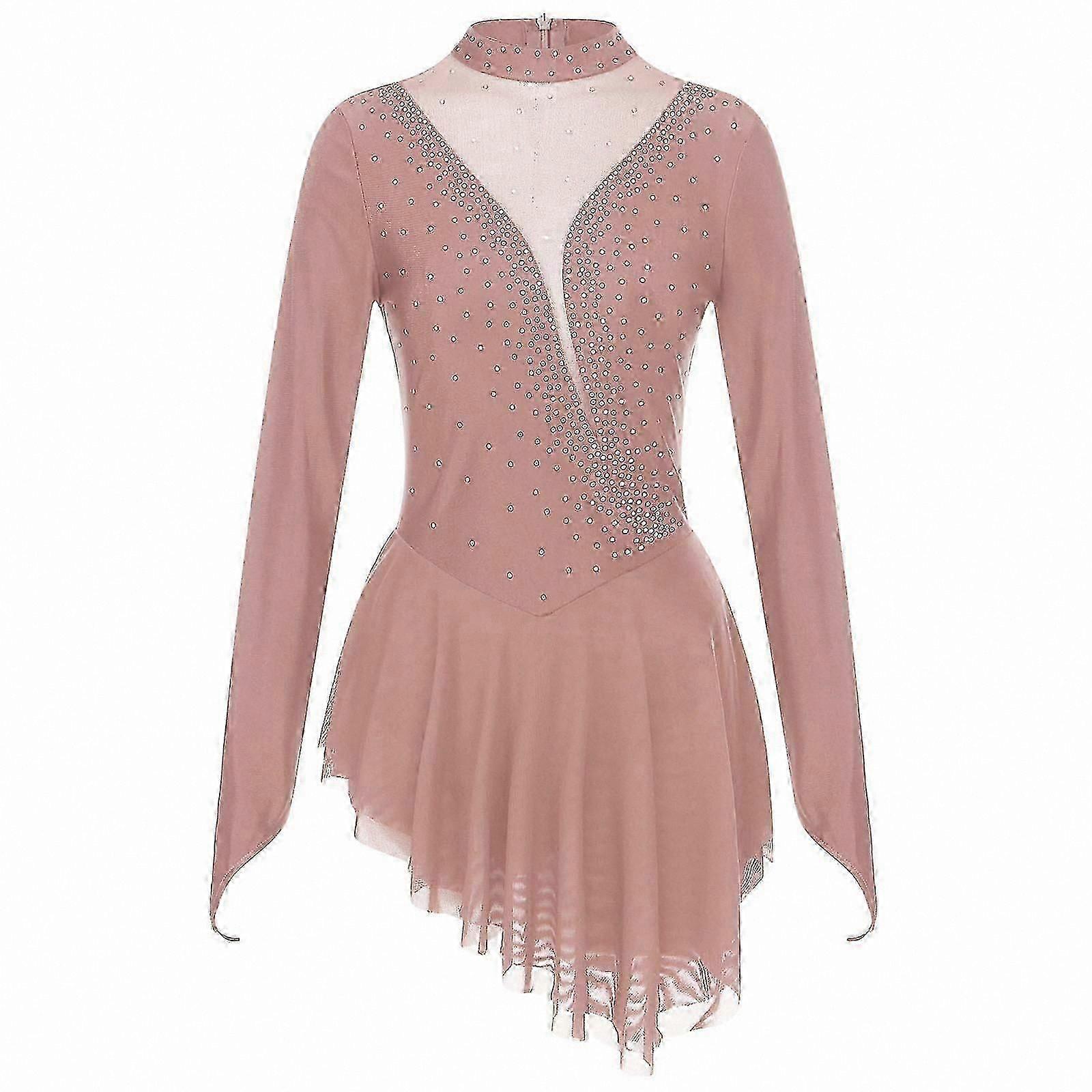 Glittery Rhinestone Ice Skating Dress for Women Modern Lyrical Ballet Prom Outfit Irregular Hem Professional Dancewear