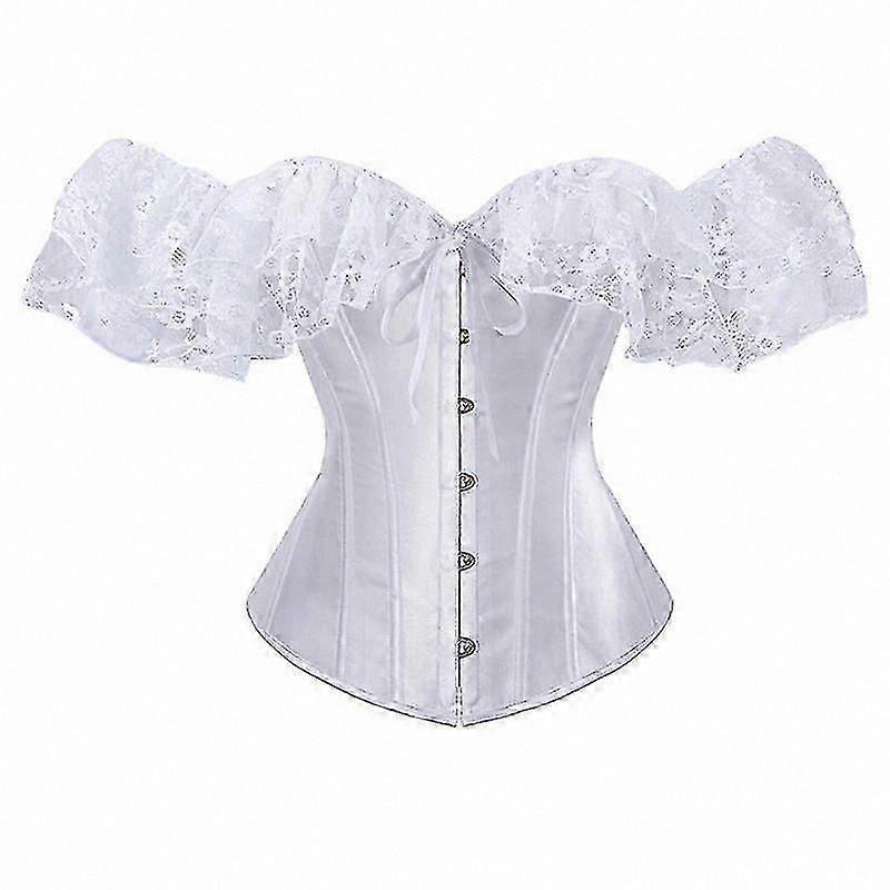 Retro Off-Neck Lace Corset with Chest Support and Short Sleeves