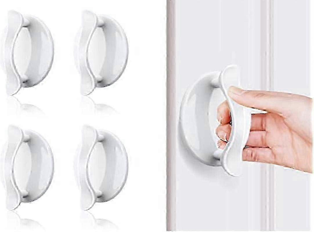 White Sticky Door Handle 4 PCS - ABS Plastic Handles for Doors, Windows, Cupboards & Drawers - Lucky-B Brand