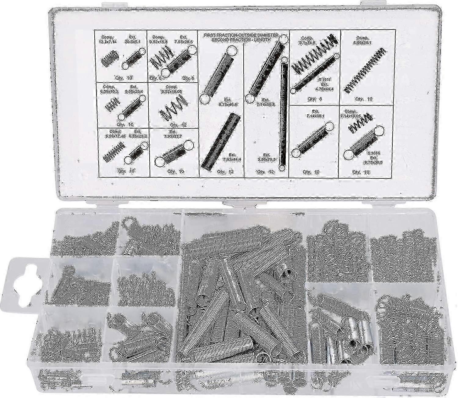 Assorted Compression and Extension Springs: 20 Sizes of Galvanized Steel Springs, 200 Pieces