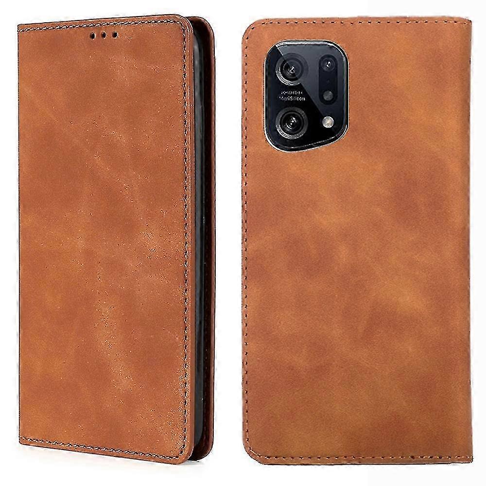 Enhanced Leather Phone Case for Oppo Find X5 - Skin-Sensitive Magnetic Design in Light Brown