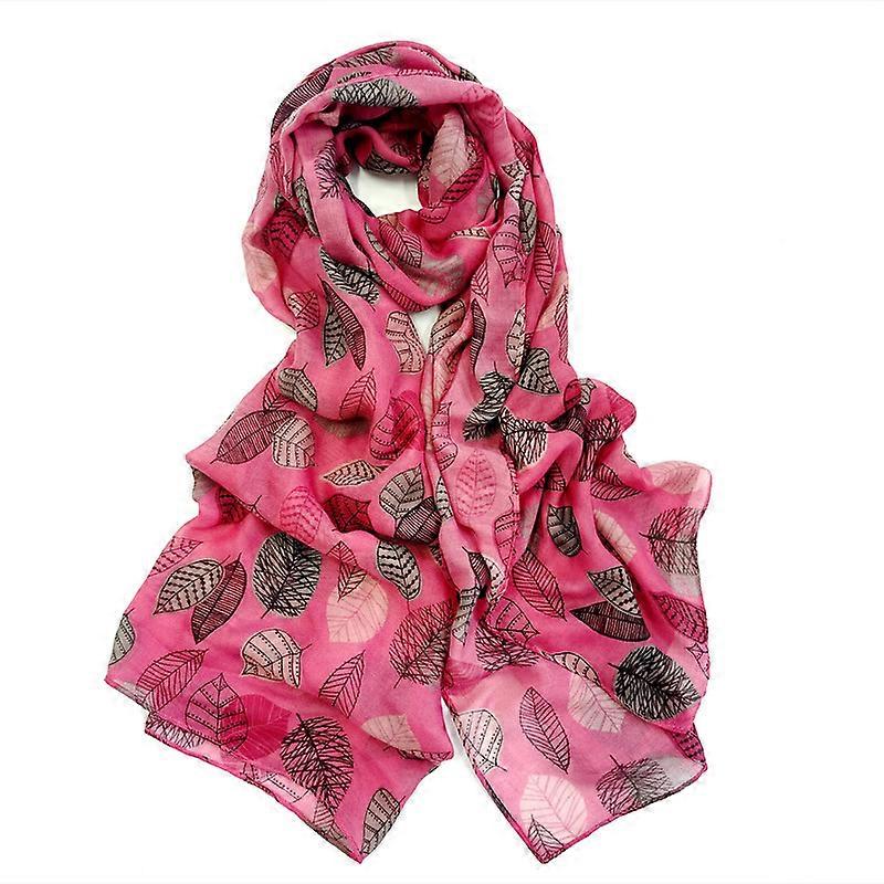Polyester 50 Twill Bali Yarn Scarf Leaves Silk Screen Fashion Vintage Printed Woven Women's Pink Shawl