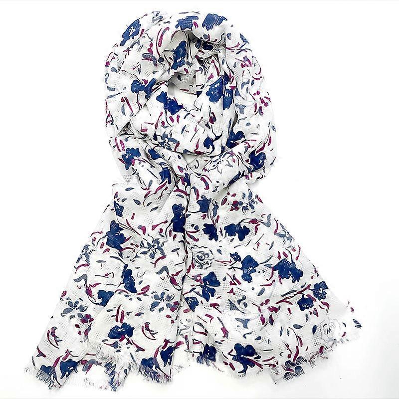 Artistic And Retro Polyester Dot Fabric Tassel Women's Scarf, Floral Silk Screen Watermark Flower Thin Woven Shawl Silk Scarf