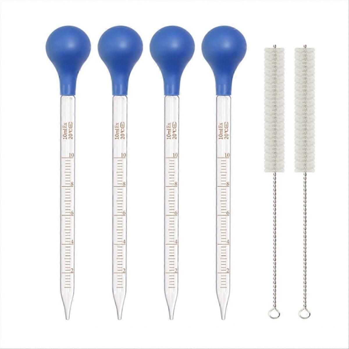 Precise Measurement: Featuring a 20cm length and a 5.5cm rubber cap, these glass pipettes are graduated for easy measurement from 1 to 10 ml. The 2mm tip hole ensures accurate dispensing without drips, ideal for laboratory and crafting use. Material: Constructed from lead-free, - glass, these droppers and safe usage. The high-quality rubber cap enhances suction, making these pipettes a reliable choice for handling various liquids. User-Friendly Design: Each pipette comes with a cleaning brush, making them easy to clean and maintain. The detachable rubber bulbs and clear glass structure allow for thorough cleaning, ensuring they are ready for reuse in any setting. Versatile Applications: Perfect for transferring essential oils, fragrances, medicines, pigments, and more. These droppers are essential for skincare routines, perfume modulation, handmade beauty products, art projects, and scientific experiments. Essential Tool for : Whether you are a scientist, artist, or DIY enthusiast, these glass droppers are indispensable for accurately measuring and dispensing liquids, aiding in precise applications across various projects. Color: Picture Color Material: Glass Package Contents: 4* dropper 2* cleaning brush Only the above package content, other products are not included. Note: Light reflection and different displays may cause the color of the item in the picture a little different from the real thing. The measurement allowed error is +/- 1-3cm.