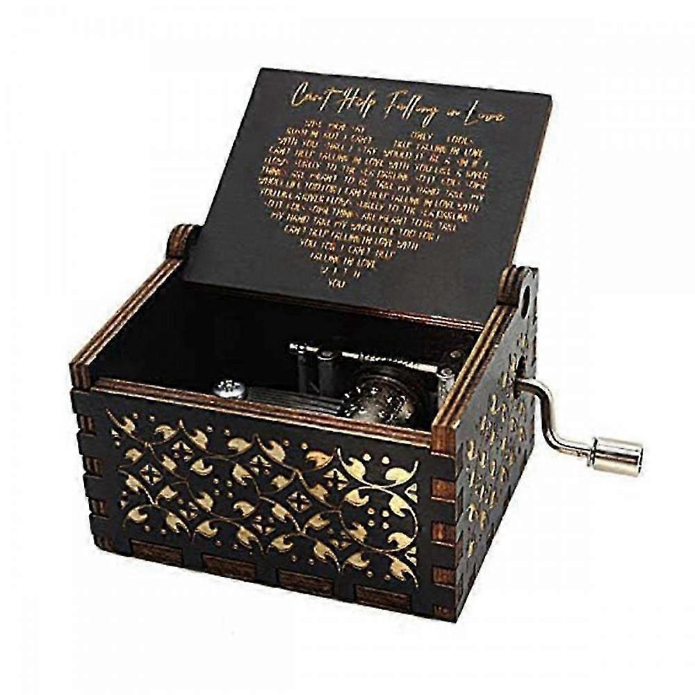 Can'T Help Falling in Love Wood Music Box, Antique Engraved Musical Boxes Case Compatible with Love One Wooden