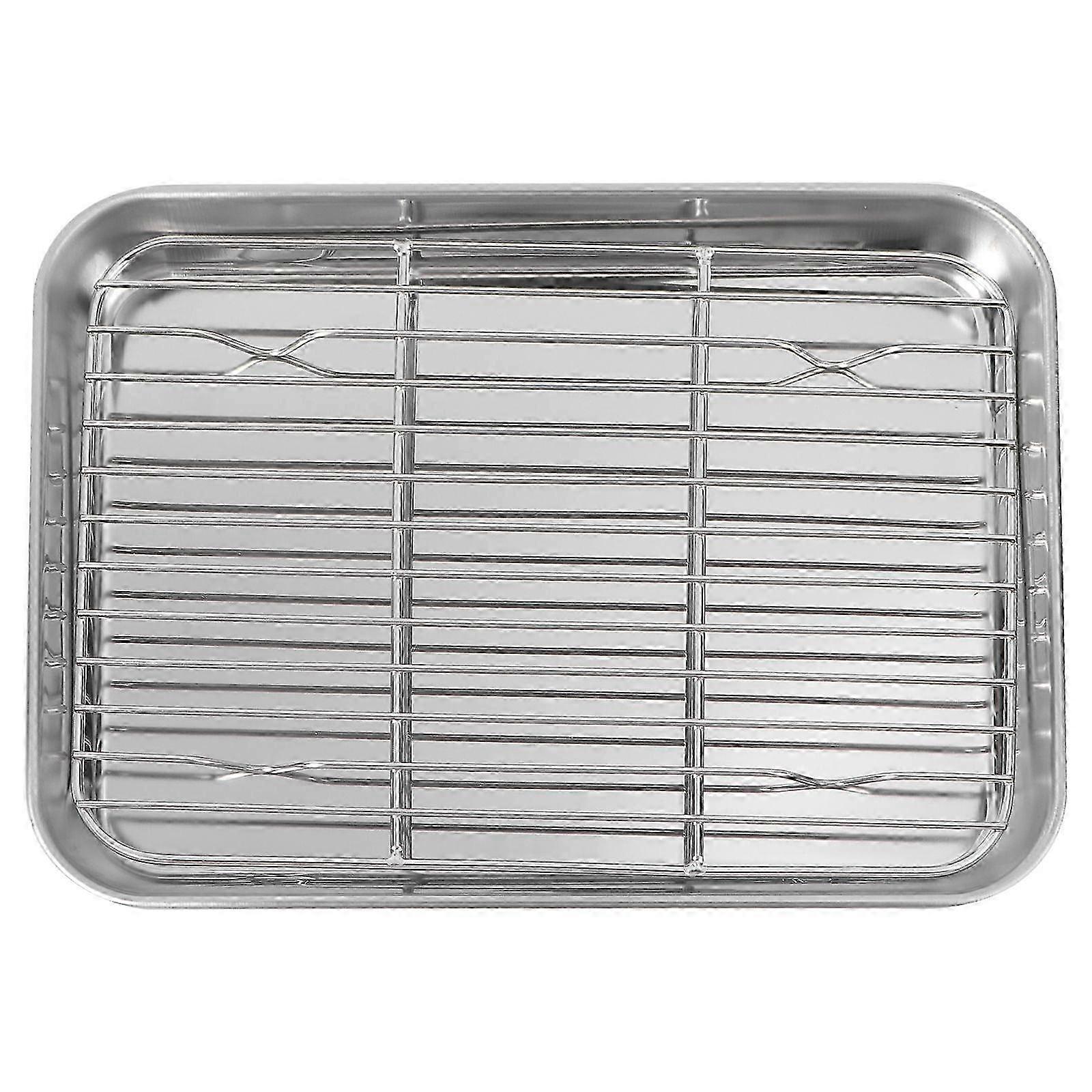 2 Pieces One Set Rectangular Baking Tray Draining Oil with Grid Rack Stainless Steel Baking Pan Sheet with Removable Cooling Rack (23x17x2.5 cm) Editi
