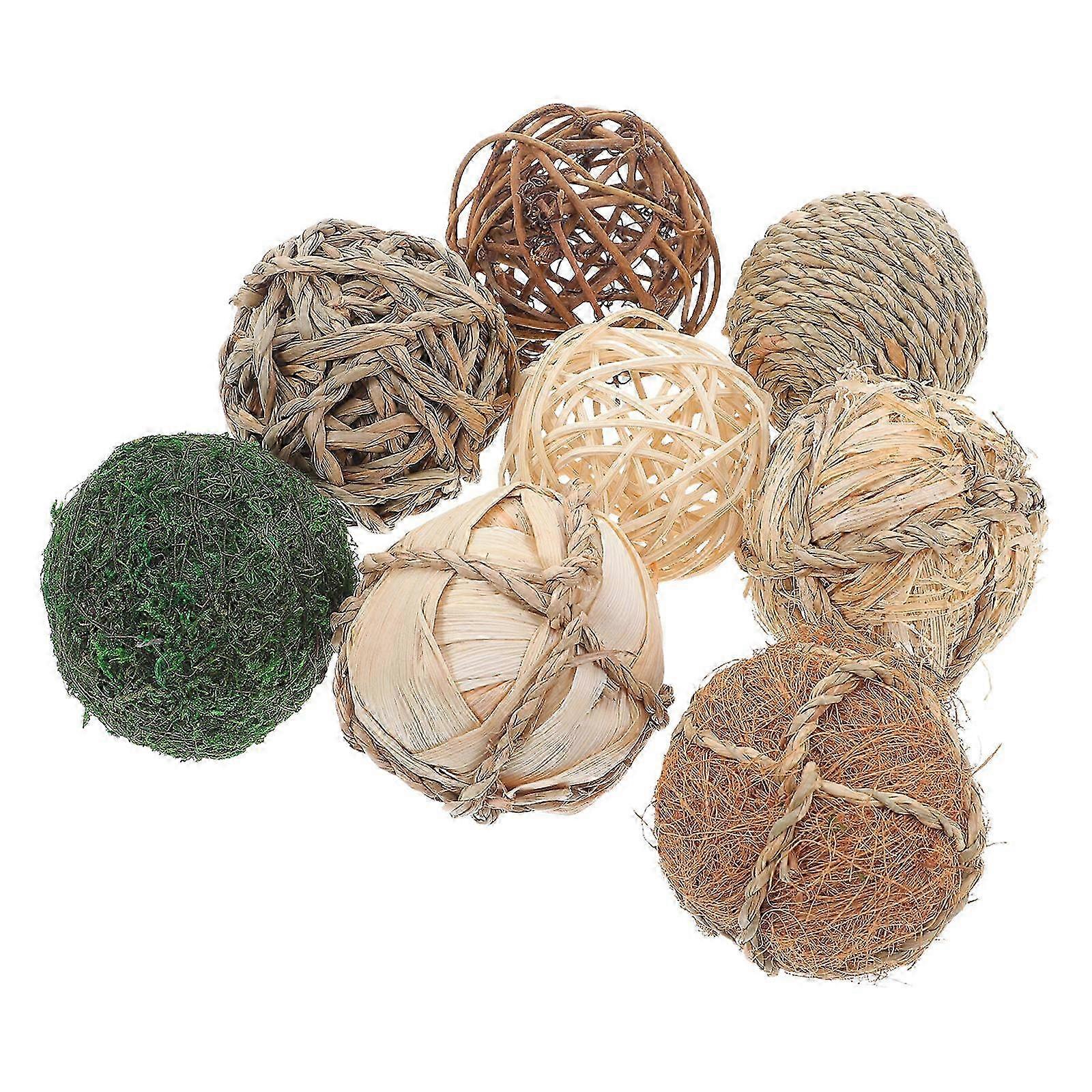 Natural Woven Rattan Balls 8pcs Set for Vase Centerpieces, Home Decor, Living Room, Bedroom, Office Use Unique Rustic Ornament Edition 1030