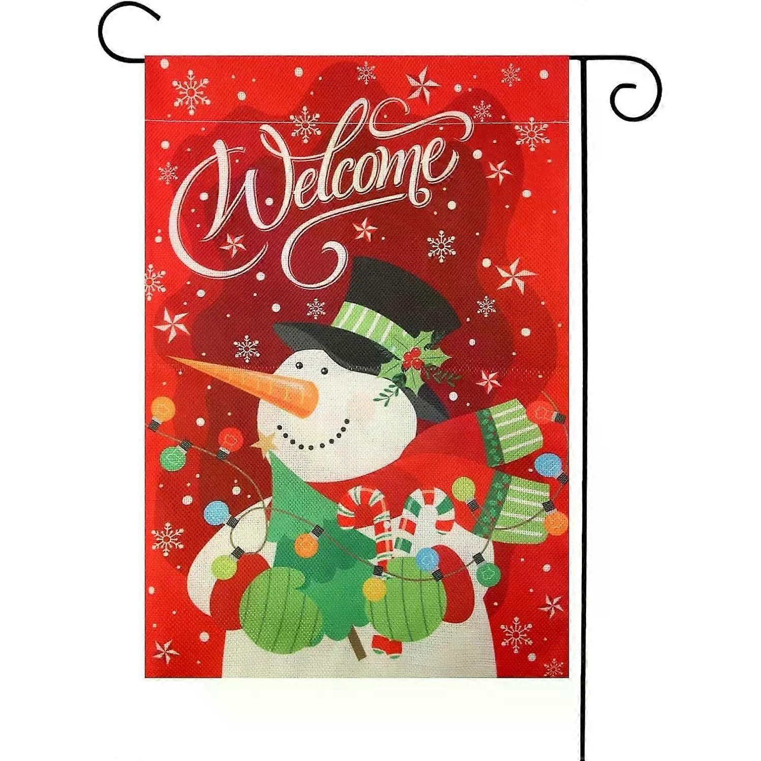 Winter Welcome Snowman Garden Flag Merry Christmas Outside Garden Flag Seasonal Flags for Christmas Outdoor Yard Garden