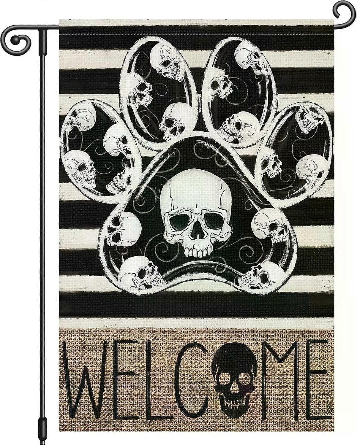 Halloween Garden Flag Dog Paw Skull Ghost 12x18 Inch Double Sided Boo Holiday Seasonal Fall Autumn Welcome Small Burlap Yard