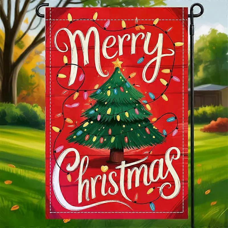 Polyester Christmas Yard Flag Single Sided Washable Decoration, Red And Green Holiday Design No Electricity Required