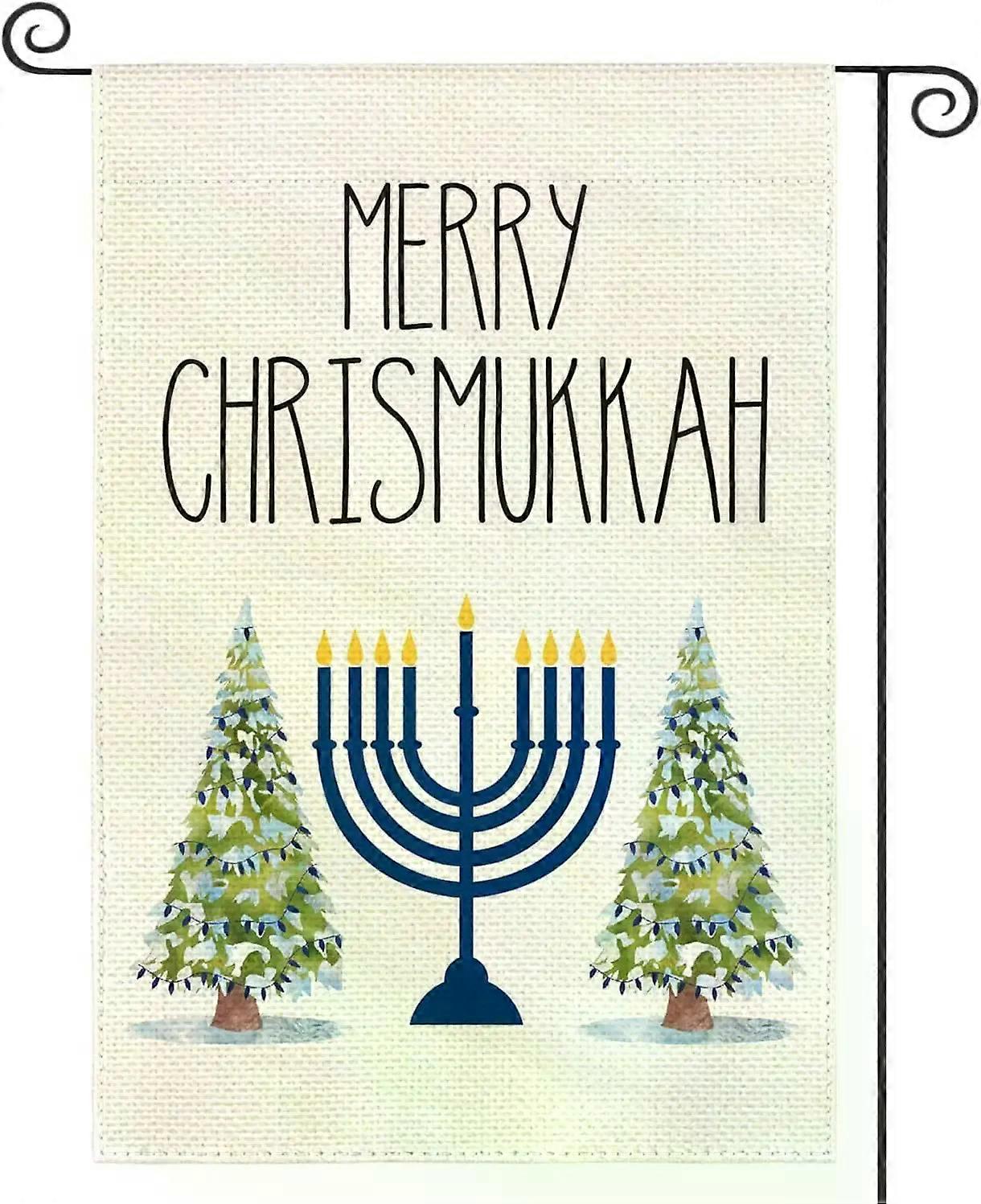 Merry Chrismukkah Menorah Christmas Tree Garden Flag Vertical Double Sided Winter Holiday Party Yard Outdoor Decoration 12x18 In