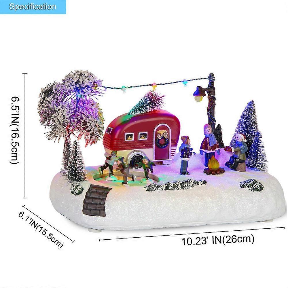 Animated Christmas Camper Village Building LED Light House Scene Collection Indoor Decoration for Table Fireplace Christmas Tree