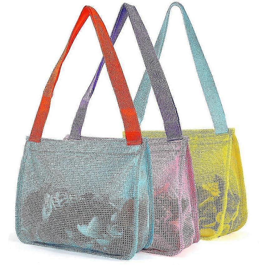 Mesh Beach Bag for Kids 3 Pack Sand Toys Shell Collecting Swimming Accessories