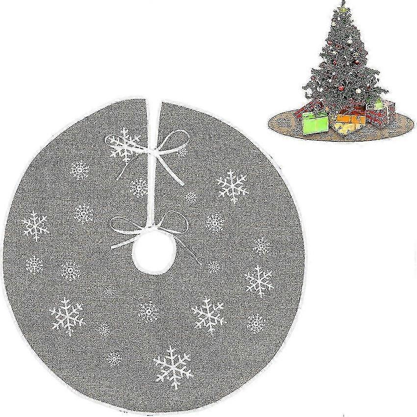 Christmas tree skirt with white snowflakes print, retro holiday decor