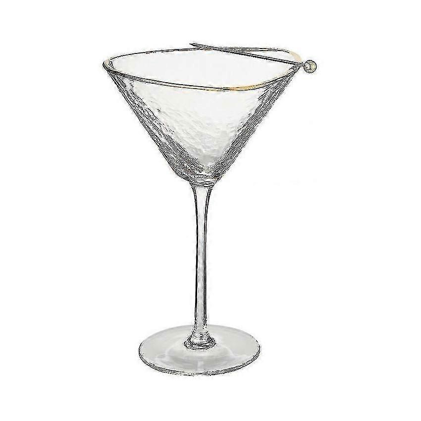 Hammered Martini Glasses Set 2 Pieces with Gold Rim Cocktail Picks
