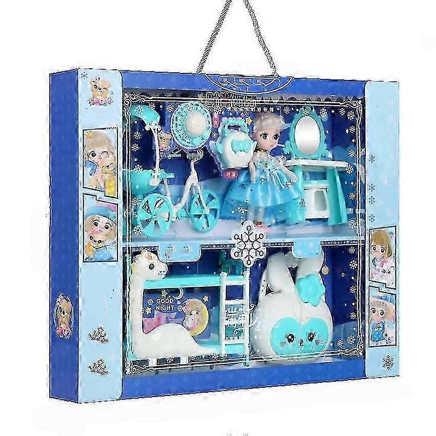 Kids Play Set with Bed, Dresser, Kitten and Backpack - Wall Hanging Included