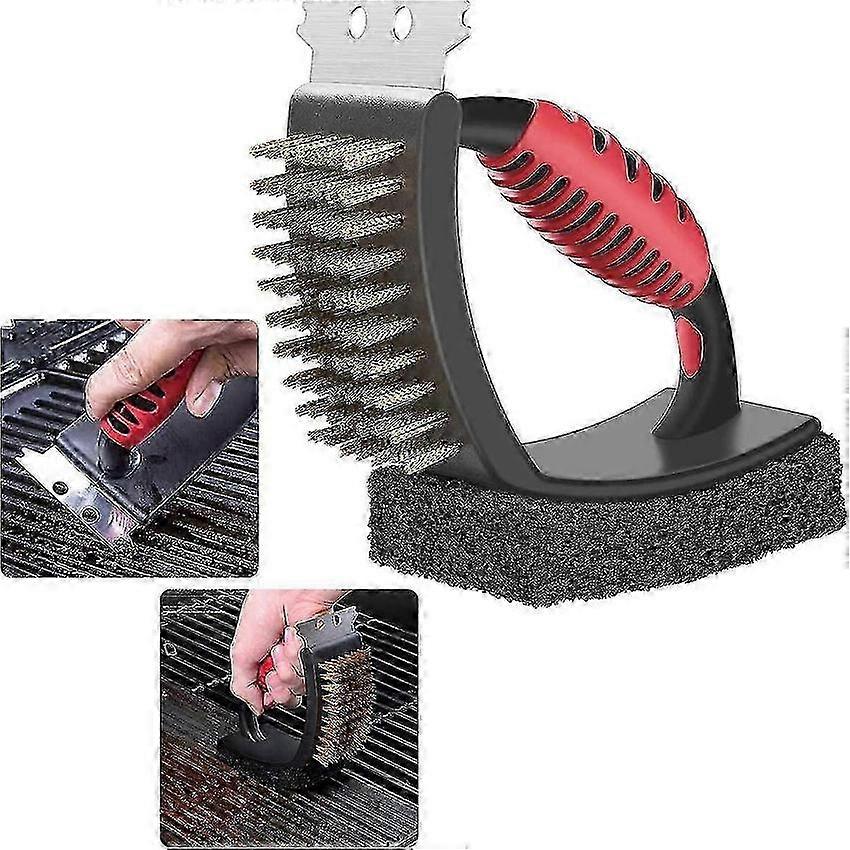 Barbecue Cleaner Brush Set 3-in-1 with Steel Scraper and Copper Wire Brush for Grills
