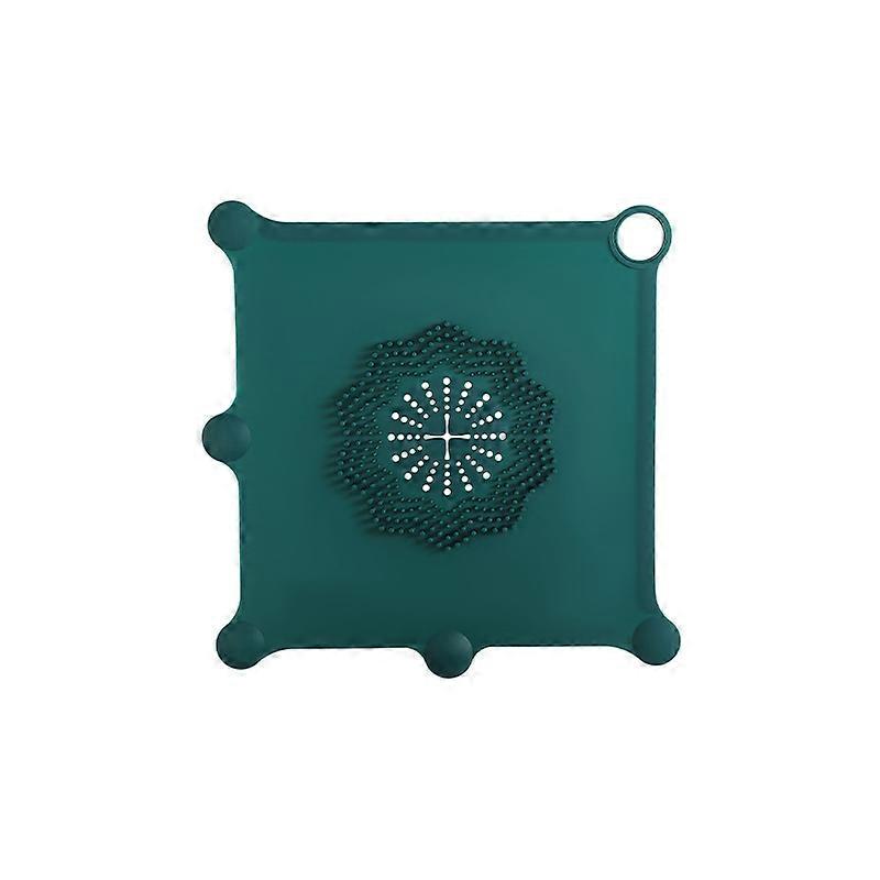 Silicone Bathroom Anti-Clog Filter Toilet Floor Mat Drain Hair Collector (Dark green)