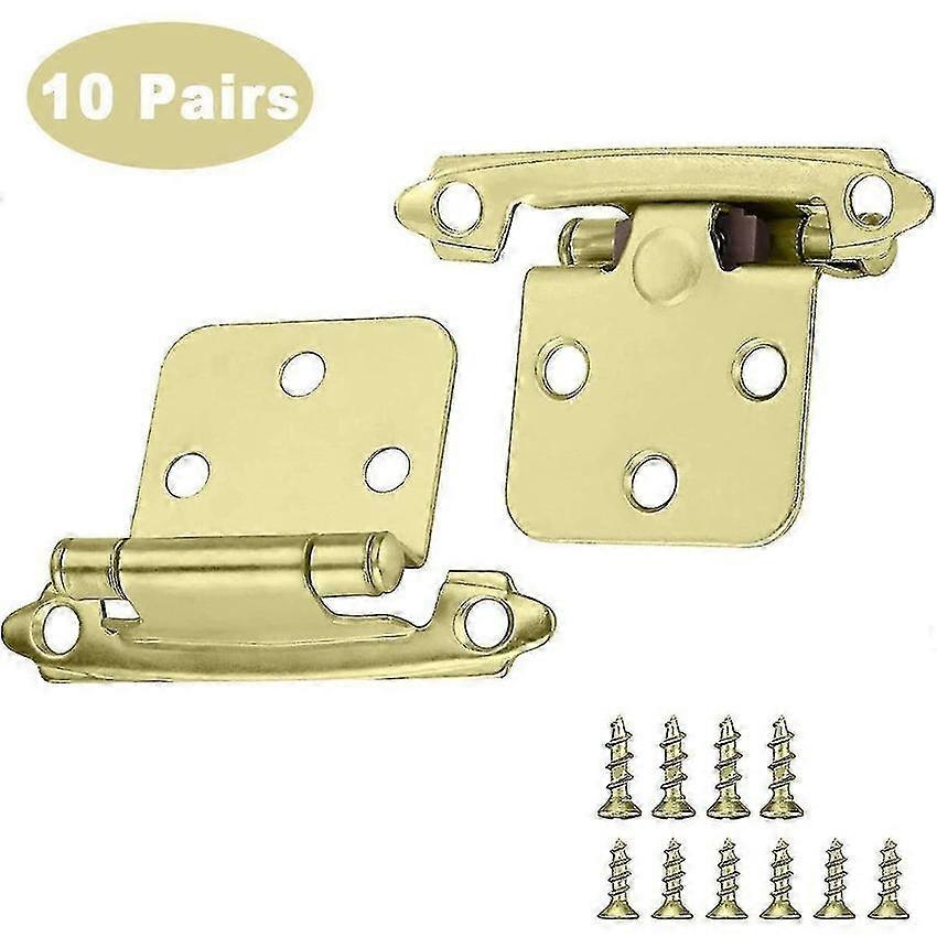 Upgrade your cabinets with our high-quality overlay cabinet hinges!<br> This pack includes 10 pairs (20 pack) of hinges, complete with screws for easy installation. Each hinge is individually wrapped to prevent scratches, ensuring a pristine look. Experience a quiet and peaceful family environment with these hinges.<br> Upgrade your cabinets with our self-closing overlay hinges. Enjoy the convenience and durability they offer, along with their stylish gold finish. Create a quiet and harmonious family environment while enhancing the functionality of your cabinets.<br> Self-Closing Mechanism:<br> <br> <br> <br> Our hinges automatically close when the cabinet door is opened less than 30°, providing convenience and an easier life.<br> <br> <br> <br> Durable and Rust-Resistant:<br> <br> <br> <br> Made from thickened metal, our kitchen cabinet hinges are sturdy and built to last. The elegant gold finish is 100% coated, ensuring resistance to rust and a stylish appearance.<br> <br> <br> <br> Perfect Fit:<br> <br> <br> <br> With a brushed nickel finish, each hinge wing measures 2.75" in length, and the centers between two holes are 2.11". Please check the size before purchase to ensure compatibility with your cabinets.<br> <br> <br> <br> Easy Installation:<br> <br> <br> <br> Each hinge comes with screws for hassle-free installation, allowing you to quickly upgrade your cabinets.<br> <br> <br> <br> Widely Compatible:<br> <br> <br> <br> Our product offers wide compatibility and can be utilized in various applications. It is ideal for furniture hardware, door or window fixings, replacing demountable cabinet hinges, and renovating kitchens, bathrooms, homes, or offices.