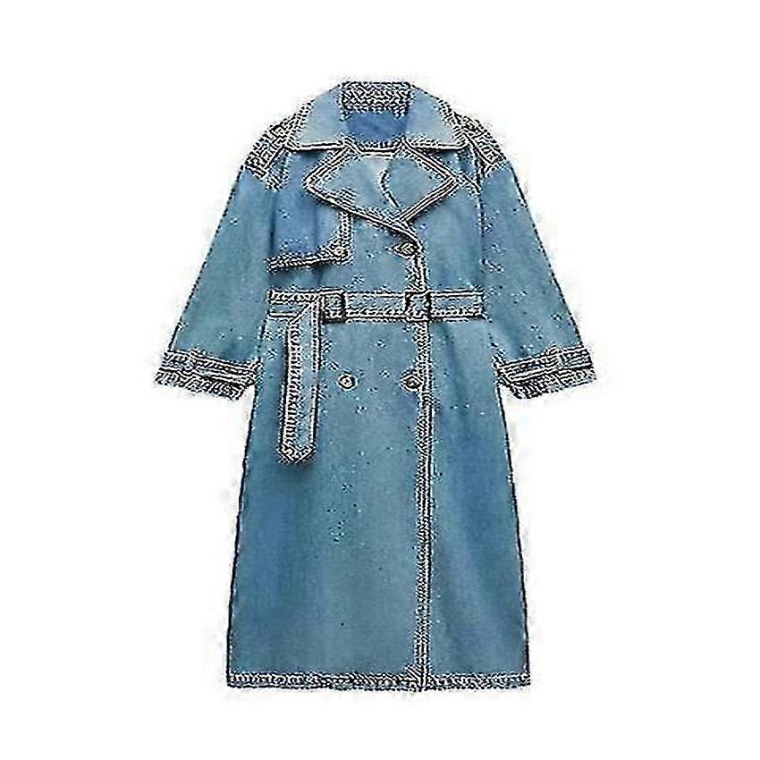 Loose Long Denim Trench Coat for Women Double Breasted Overcoat with Belt