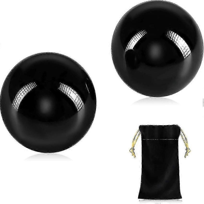 Black Obsidian Baoding Balls 2pcs 1.57 Inch Chinese Health Exercise Massage Balls With Carry Pouch