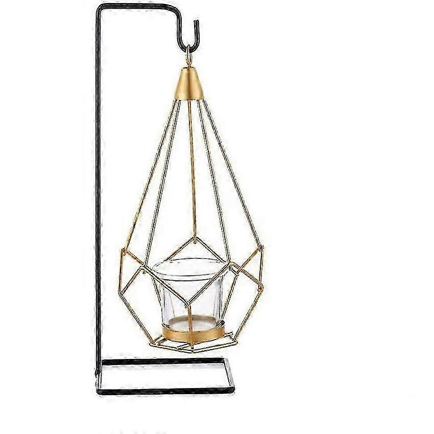 Geometric Metal Tea Light Candle Holder Glass Stand 10cm