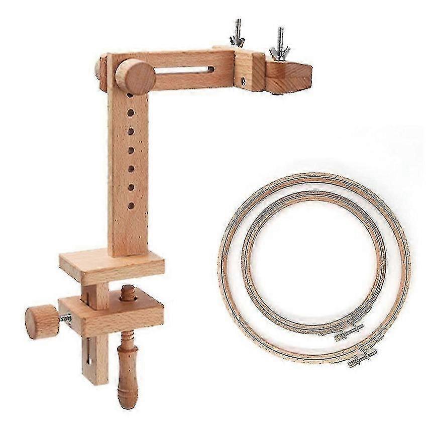 Adjustable Wooden Embroidery Hoop Stand 360 Degree Rotation Desktop Holder