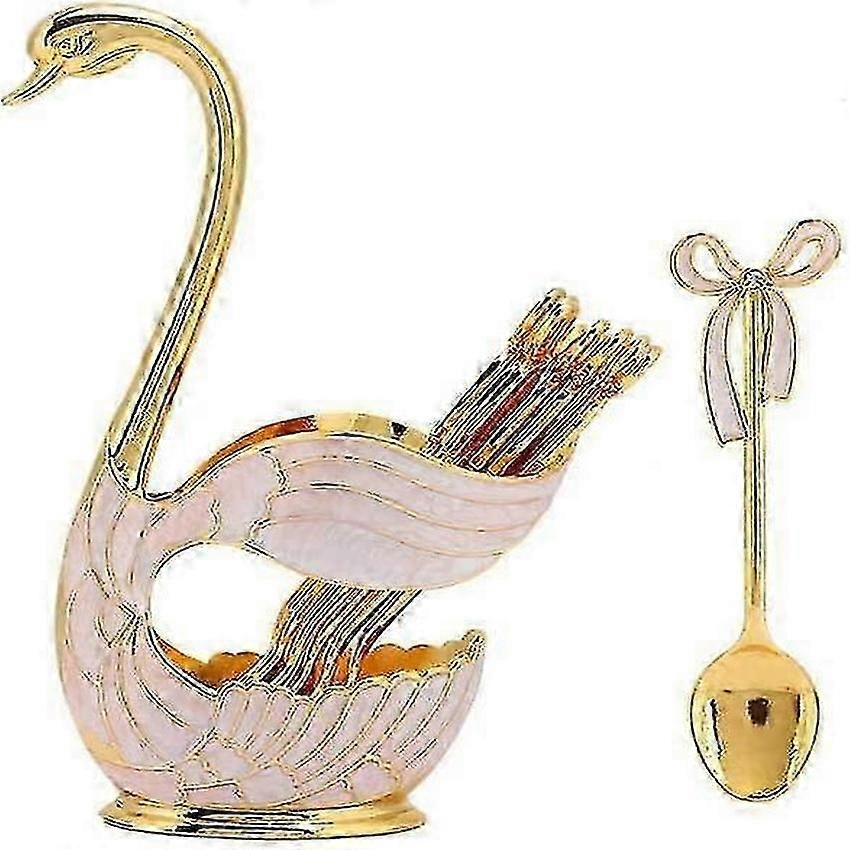 Coffee Dessert Spoon Set with Swan Base Holder, Metal Flatware Organizer, Size L