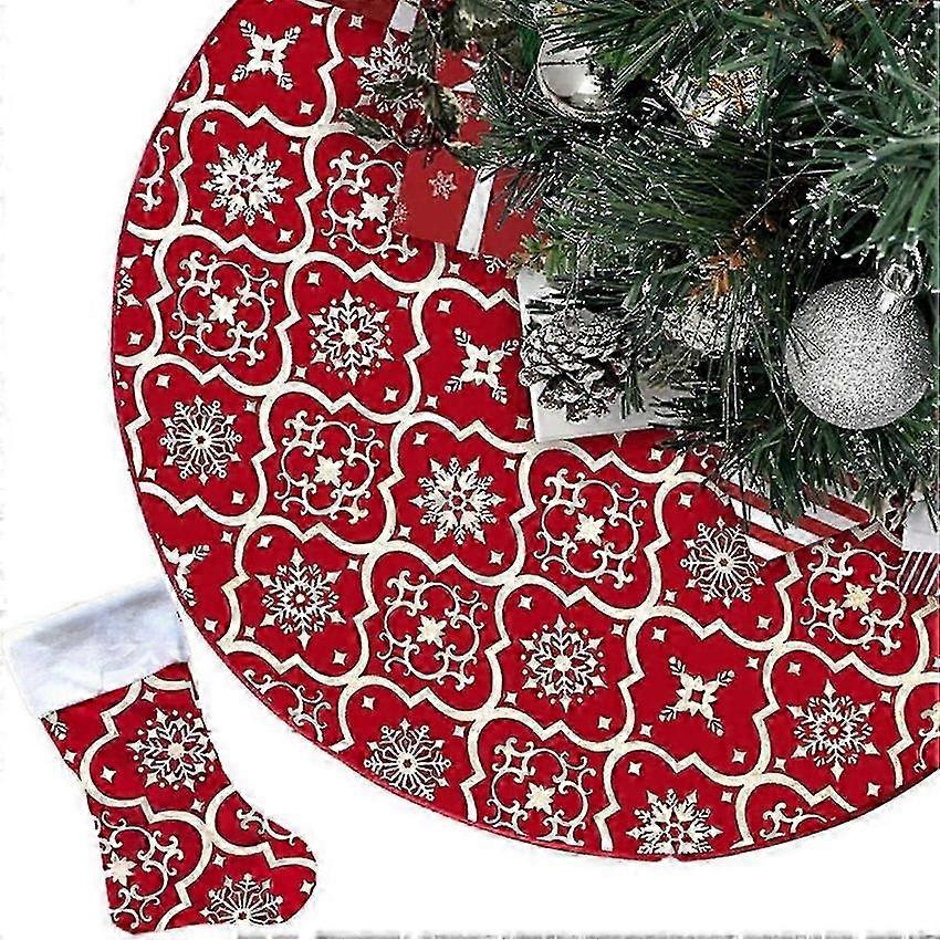Christmas Tree Skirt 48 Inch Soft Cover Mat Snowflake Decor Farmhouse Xmas