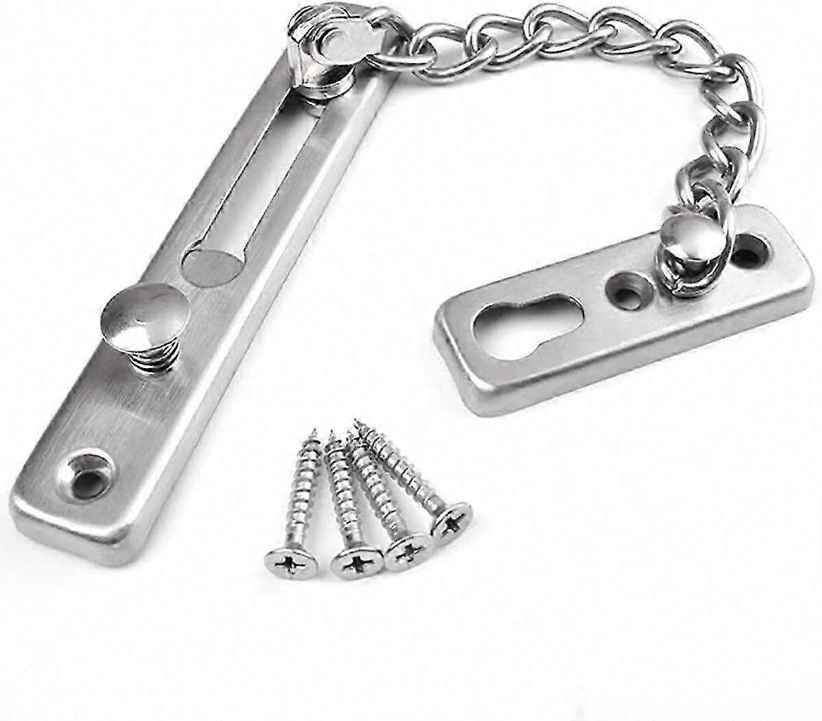 Anti-Theft Stainless Steel Door Security Chain with Spring Lock for Home Door Installation, Includes Screws for Safety