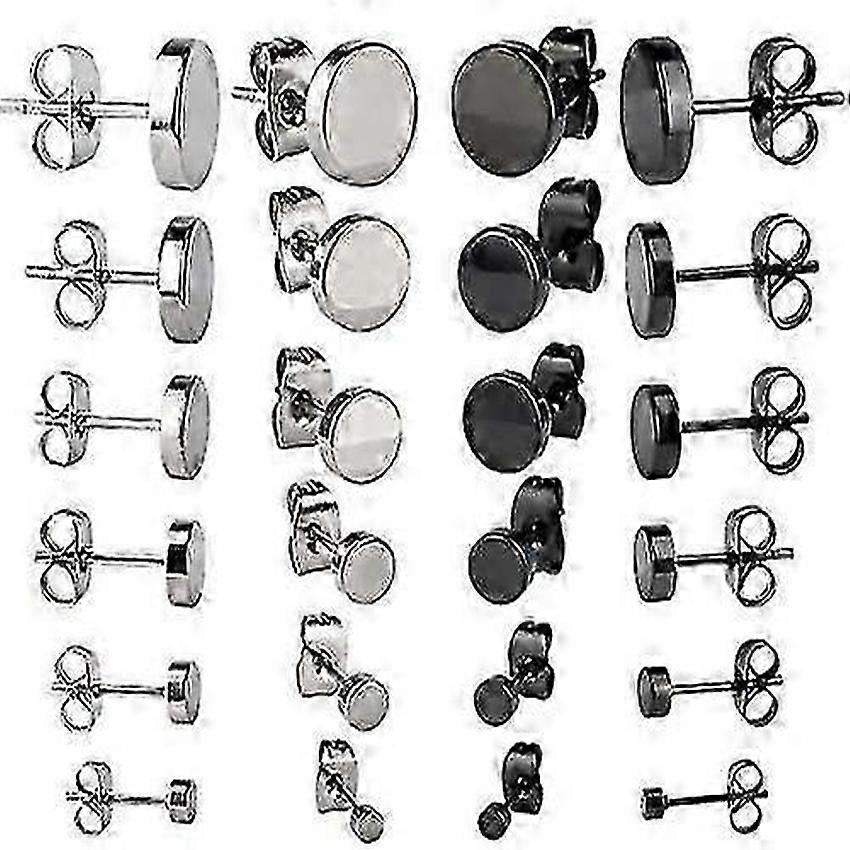 12 Pairs Stainless Steel Round Stud Earrings for Men and Women