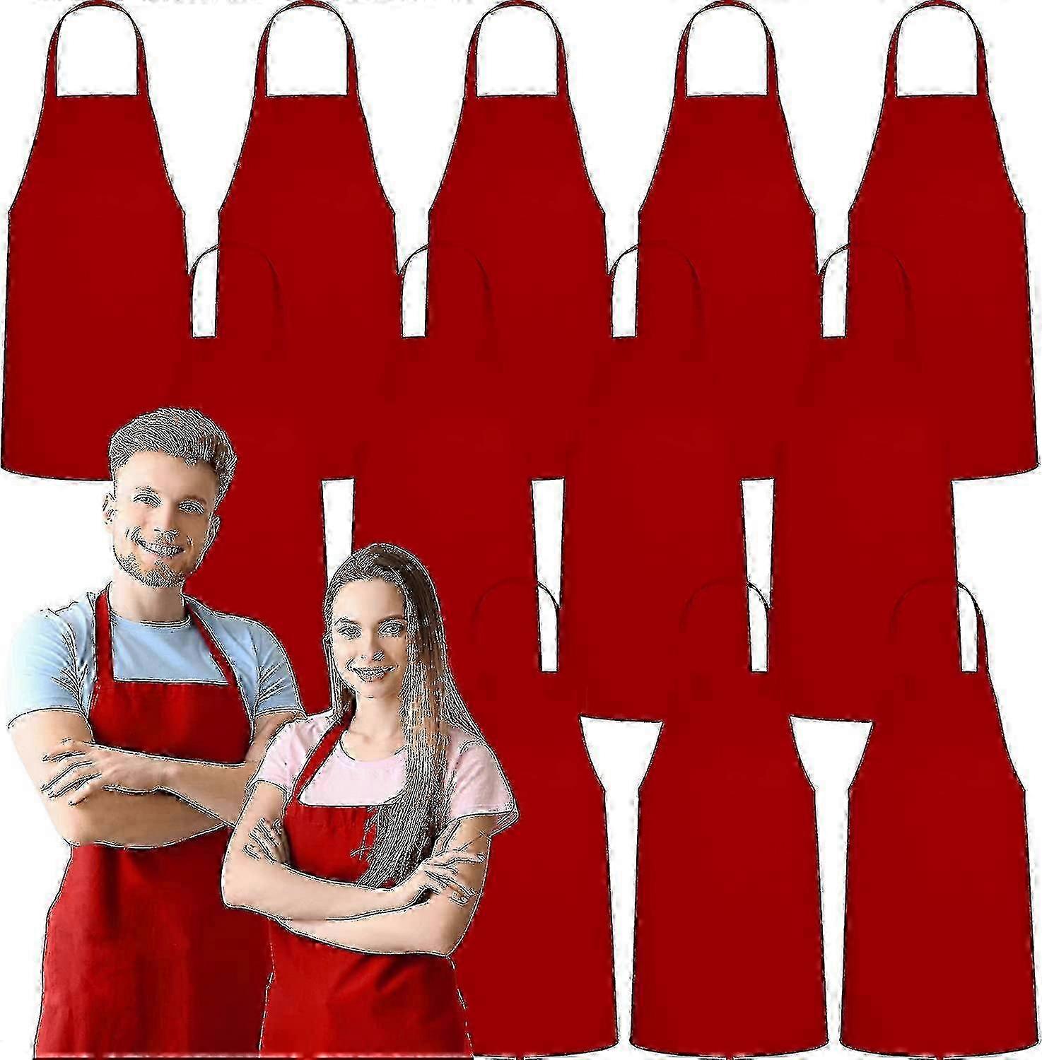 12 Pack Red Bib Aprons for Men & Women - Machine Washable, Kitchen Cooking & BBQ Use, No Pockets - Bulk Set