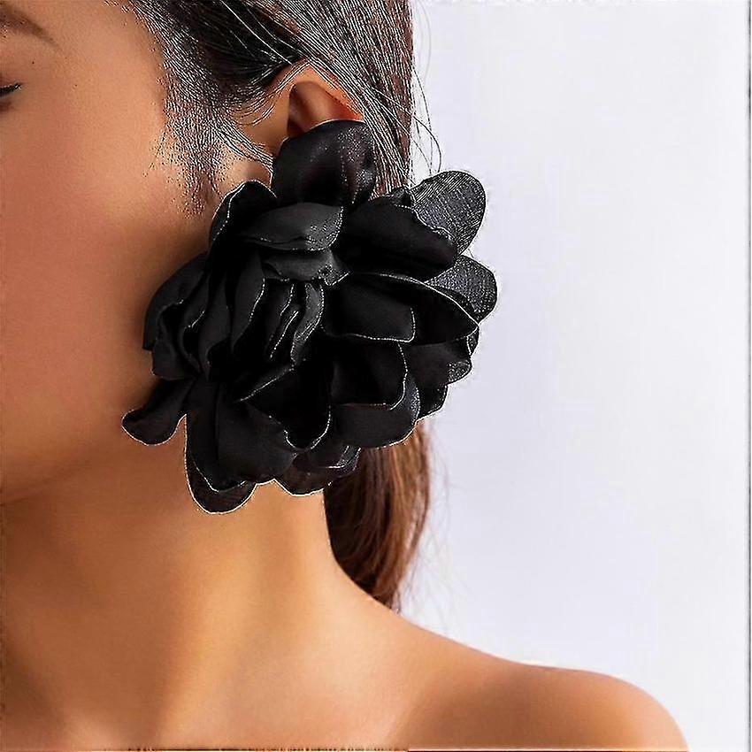 Fluffy Fabric Flower Stud Earrings for Women Elegant Petal Design