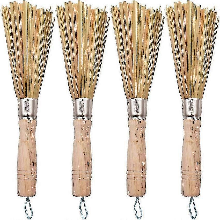 Natural Cleaning Whisks Set 4 Pcs for Frying Pans Wok Brushes