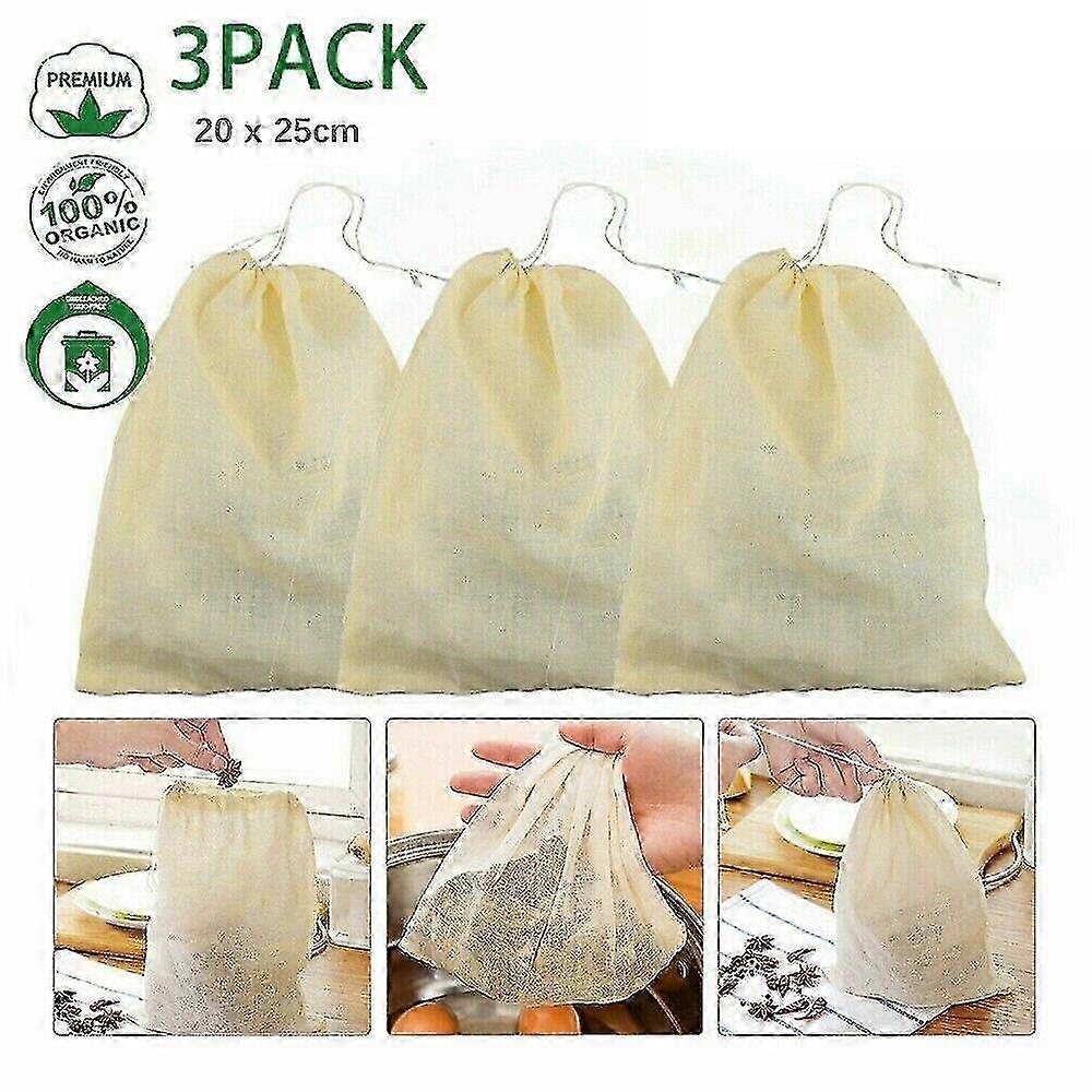 Organic Cotton Nut Milk Bag, Reusable Food Strainer for Brew Coffee & Cheese, 3 Pack ZZ14