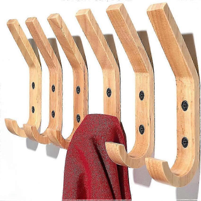 Modern Wooden Wall Hooks 6 Pack Coat Hangers Home Decor