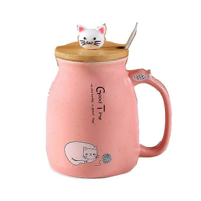 Cartoon Couple Cute Cat Ceramic Water Cup Coffee Cup Breakfast Milk Gift Cup (pink)