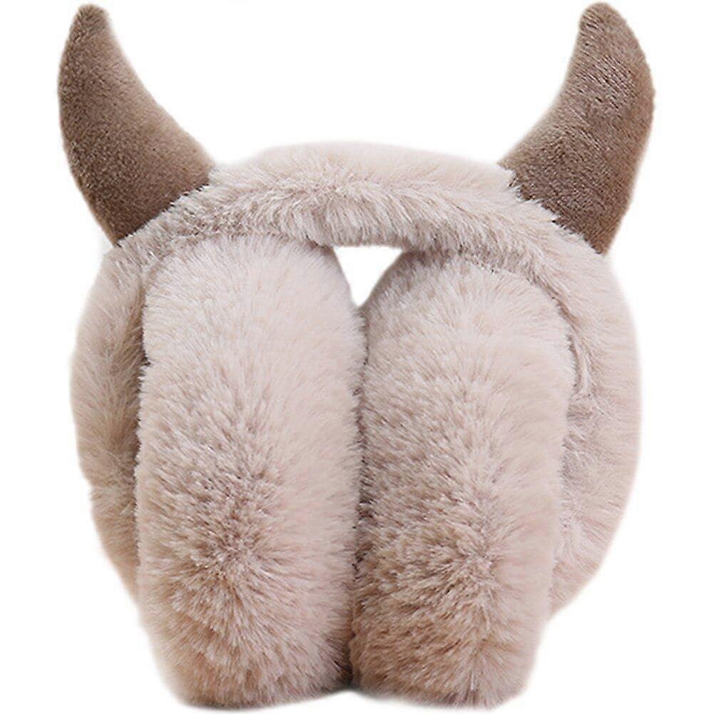Women's warm earmuffs, cute little devil earmuffs, plush foldable earmuffs (Khaki)