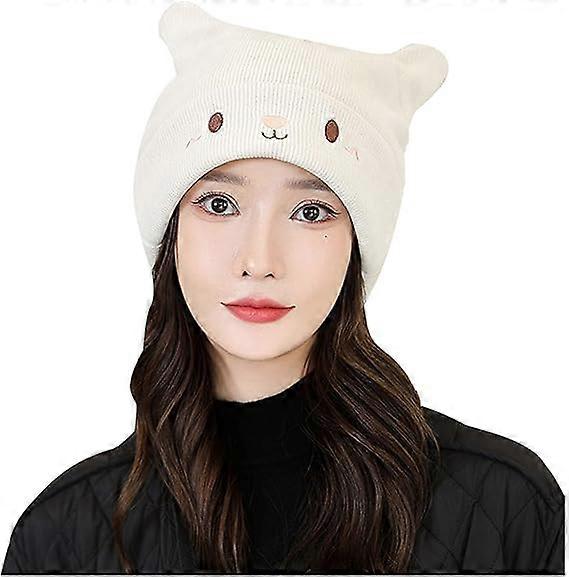 Plush Animal Ear Hat Knitted Hat Cat Ear Hat Knitted Hat Winter Ski Hat Plush Hat (Off White)